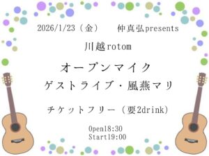 仲真弘Pre.『オープンマイク』 1月 23 Fri 2026 ALL EVENTS 仲真弘Pre.『オープンマイク』 OPEN 18:30 START 19:00 チケットフリー・要2D ゲストライブ・風燕マリ 前のスケジュール 次のスケジュール