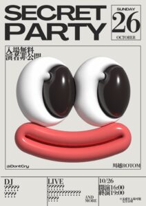 Don’t cry presents シークレットパーティ 10月 26 Sun 2025 ALL EVENTSPICK UP 出演 時間 open 16:00 / close19:00 前のスケジュール 次のスケジュール